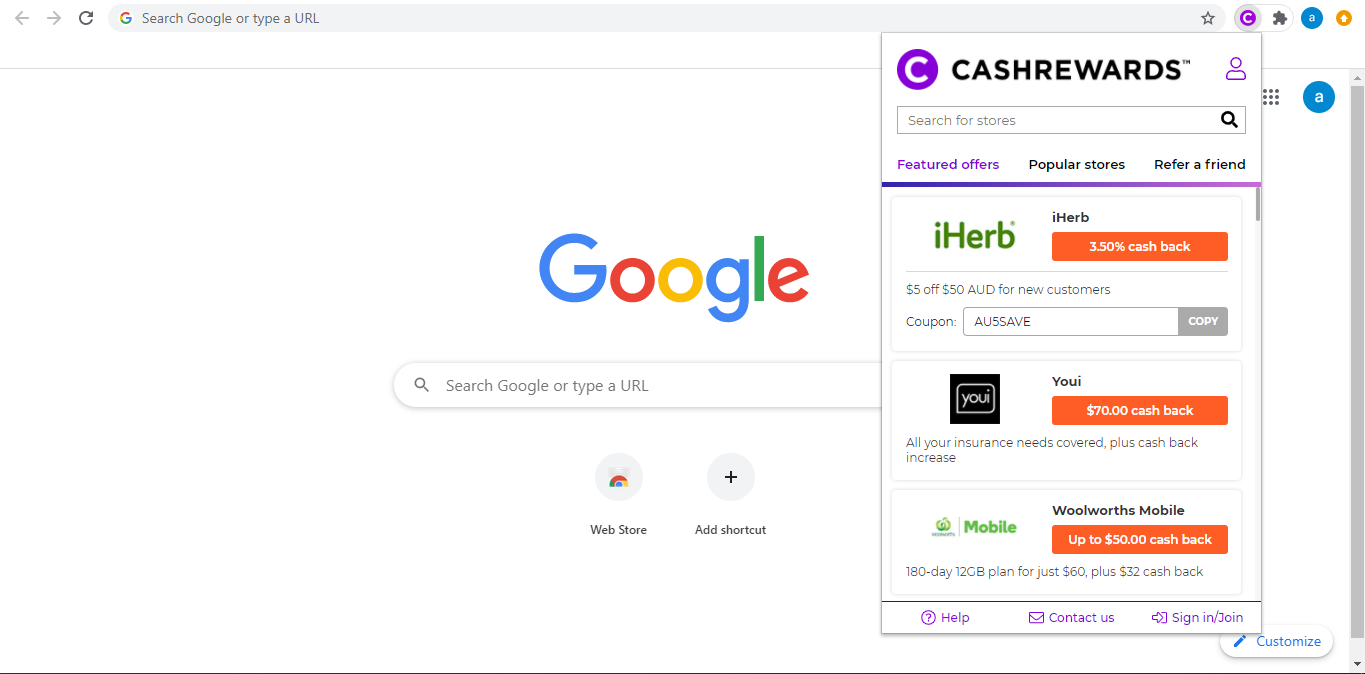 Расширение для браузера, предоставляющее кэшбэк для самой быстрорастущей технологической компании Австралии согласно номинации Deloitte Tech Fast 50.