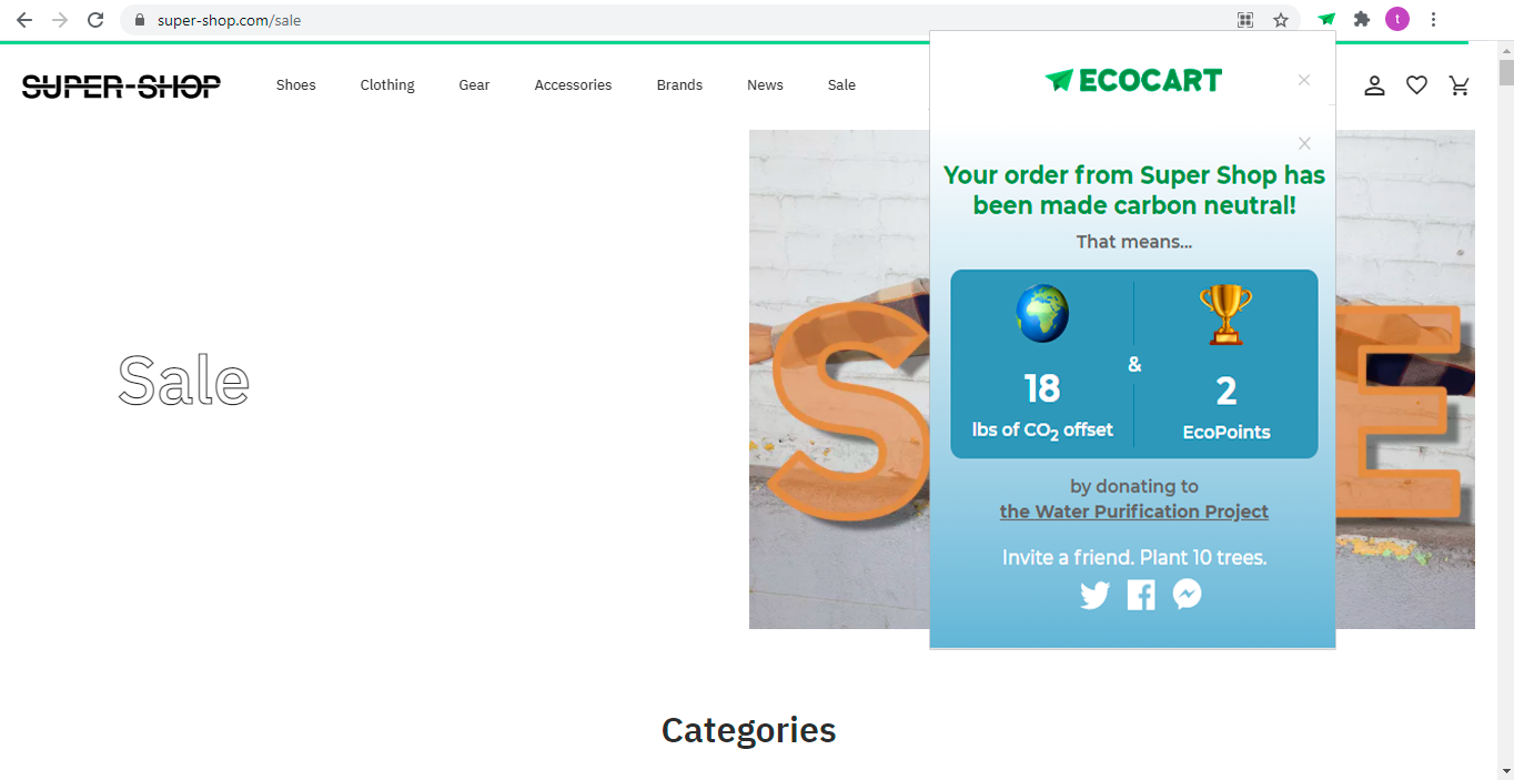Прозрачность — это основа. Мы встроили калькулятор CO2 прямо в расширение. Пользователь видит, сколько углерода генерировала его покупка, и что EcoCart компенсирует это за его счёт. Одно нажатие — и дерево растёт.