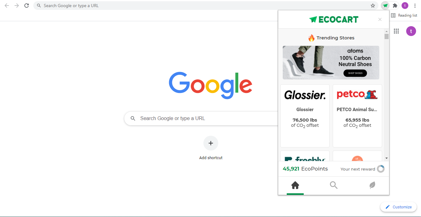 Прозрачность — это основа. Мы встроили калькулятор CO2 прямо в расширение. Пользователь видит, сколько углерода генерировала его покупка, и что EcoCart компенсирует это за его счёт. Одно нажатие — и дерево растёт.